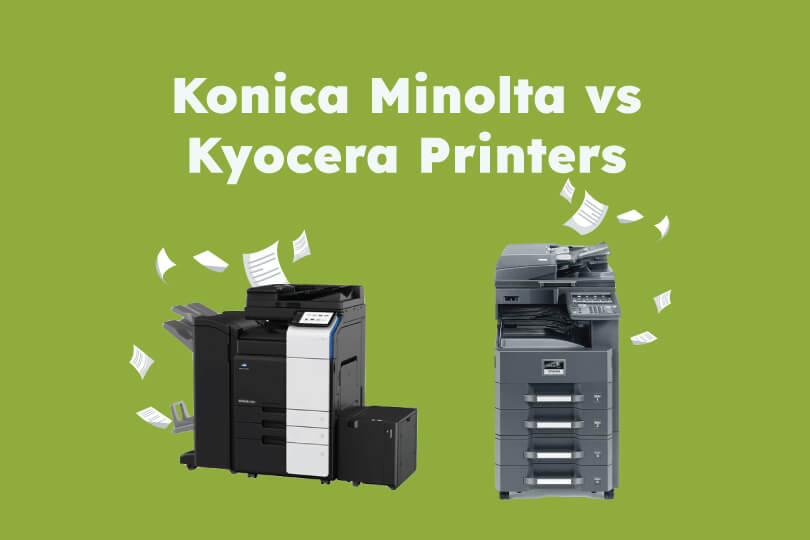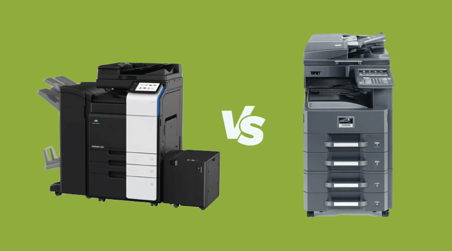 Konica Minolta and Kyocera are both renowned for long-lasting, reliable and eco-friendly printing solutions. We’re here to discuss the differences and similarities between Konica Minolta and Kyocera printers, helping you make an informed decision on printer leasing or buying.